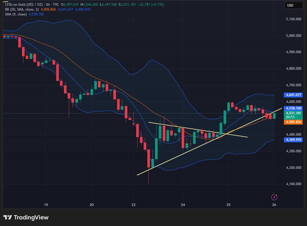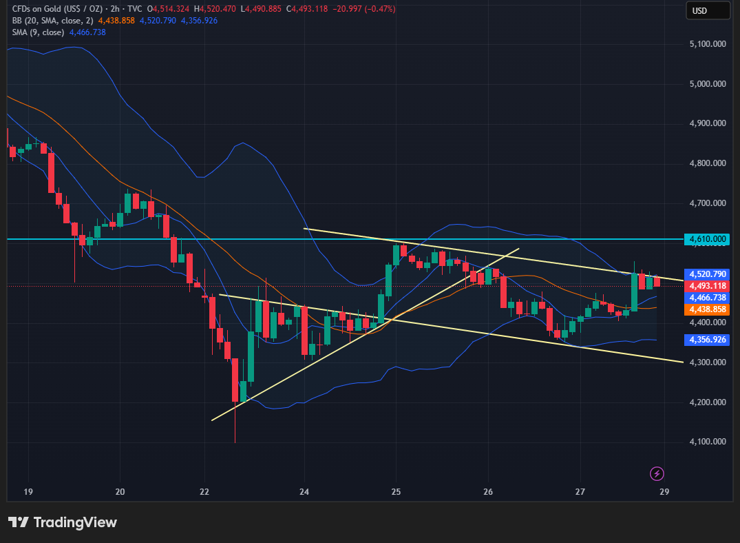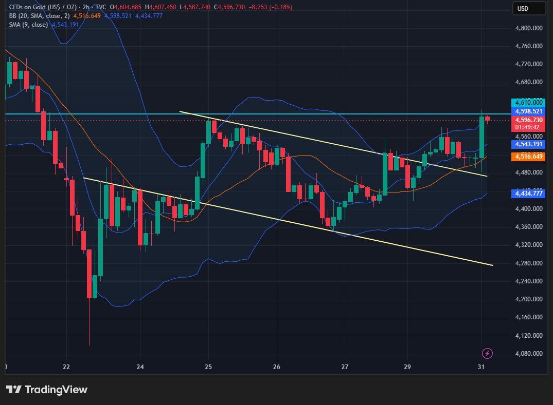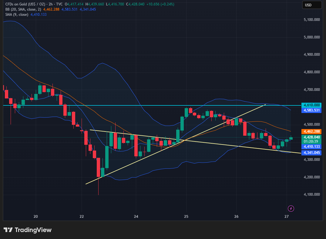 Berdasarkan grafik harga Emas (XAU/USD) tersebut, berikut adalah analisis komprehensif mengenai kondisi pasar saat ini:…